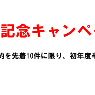 開業記念キャンペーンとして、先着10件に限り、年間契約を初年度半額にて承ります。